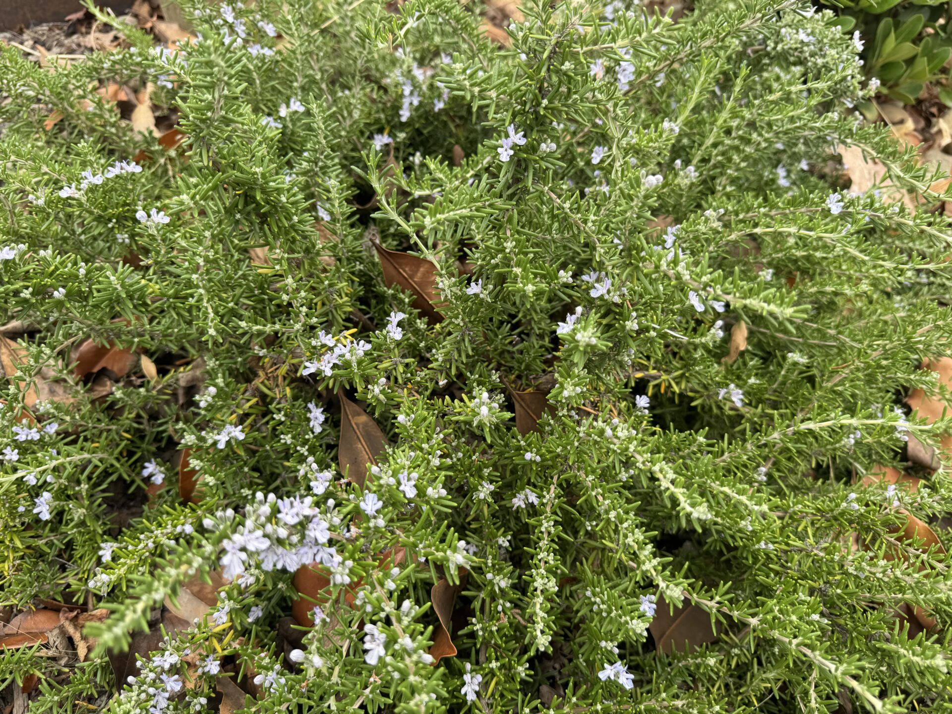 A low-growing, spreading rosemary that trails over walls, raised beds, and out of pots. The aromatic leaves are great fresh or dried for cooking — lamb, beef, stuffings, poultry, and roasts. Blue flowers appear through the cooler months.