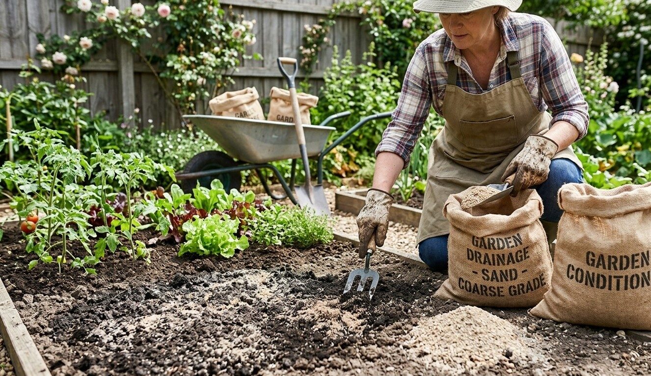 Adding coarse sand to Melbourne’s heavy clay soils can improve drainage, but it needs to be mixed thoroughly. A thin layer of sand on top of clay actually makes drainage worse by creating a barrier.
