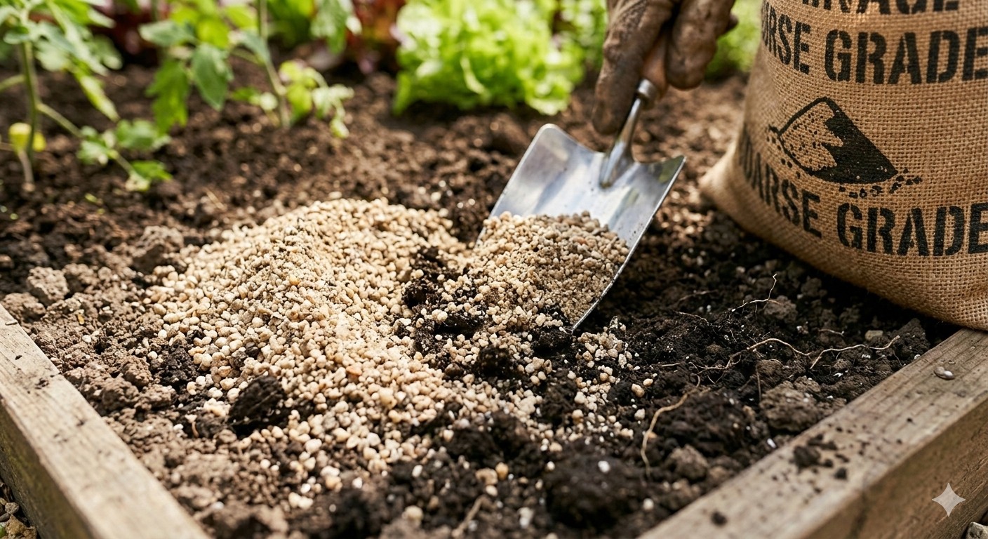 Sand is a versatile garden material used for paving base layers, improving drainage in heavy soils, building sandpits, and various construction tasks around the garden.
